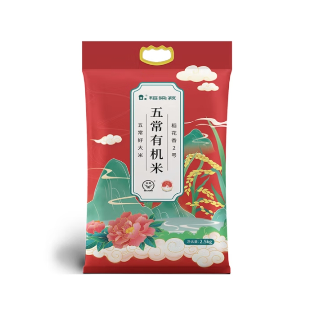 稻梁菽 五常有机稻花香大米有机红色袋装 5斤
