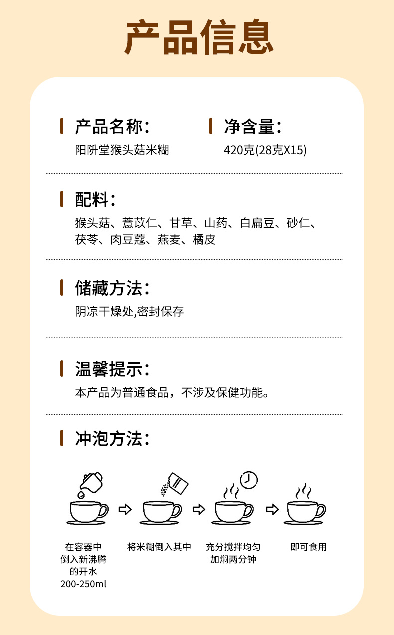 阳阩堂 猴头菇米昔乐米糊 28gx15袋/盒