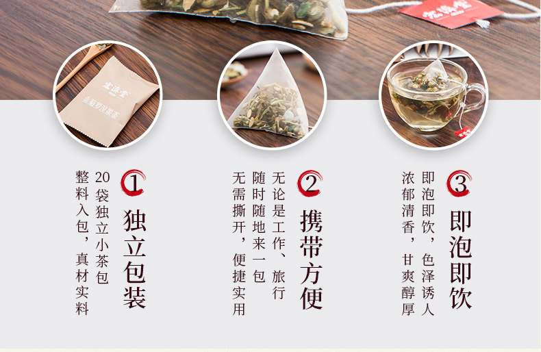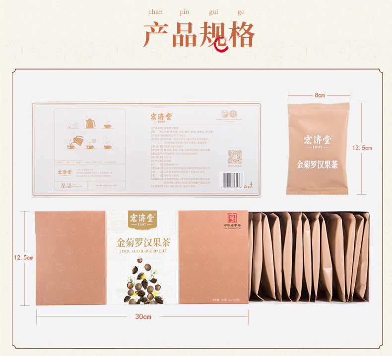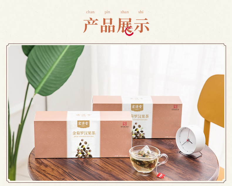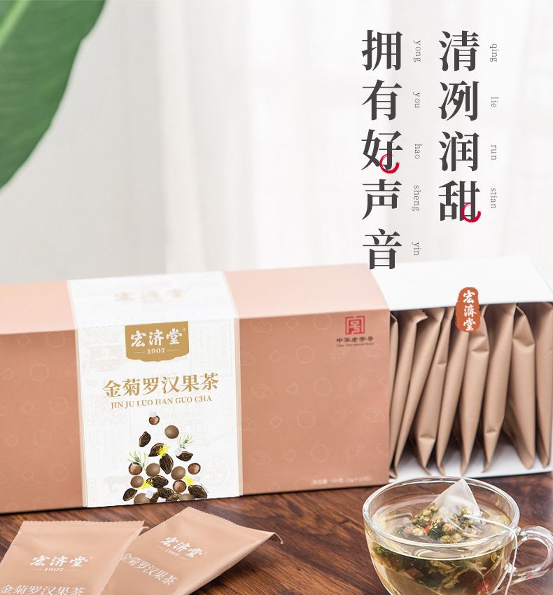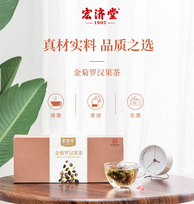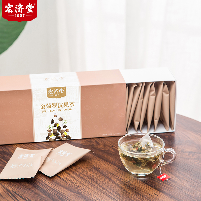 【供销智选】宏济堂 金菊罗汉果茶(整料) 180g(9g/包*20包)/盒*3