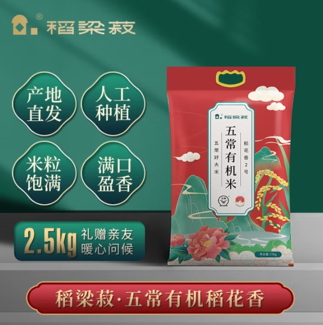 稻梁菽 五常有机稻花香大米有机红色袋装 5斤