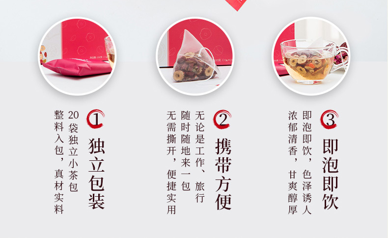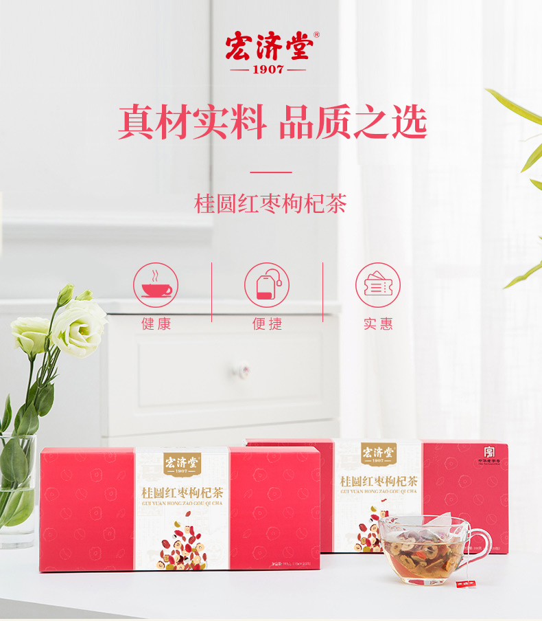 宏济堂 桂圆红枣枸杞茶(整料) 200g(10g/包*20包)/盒*3