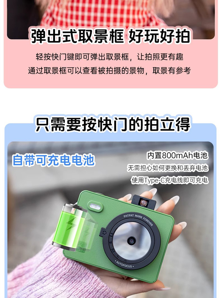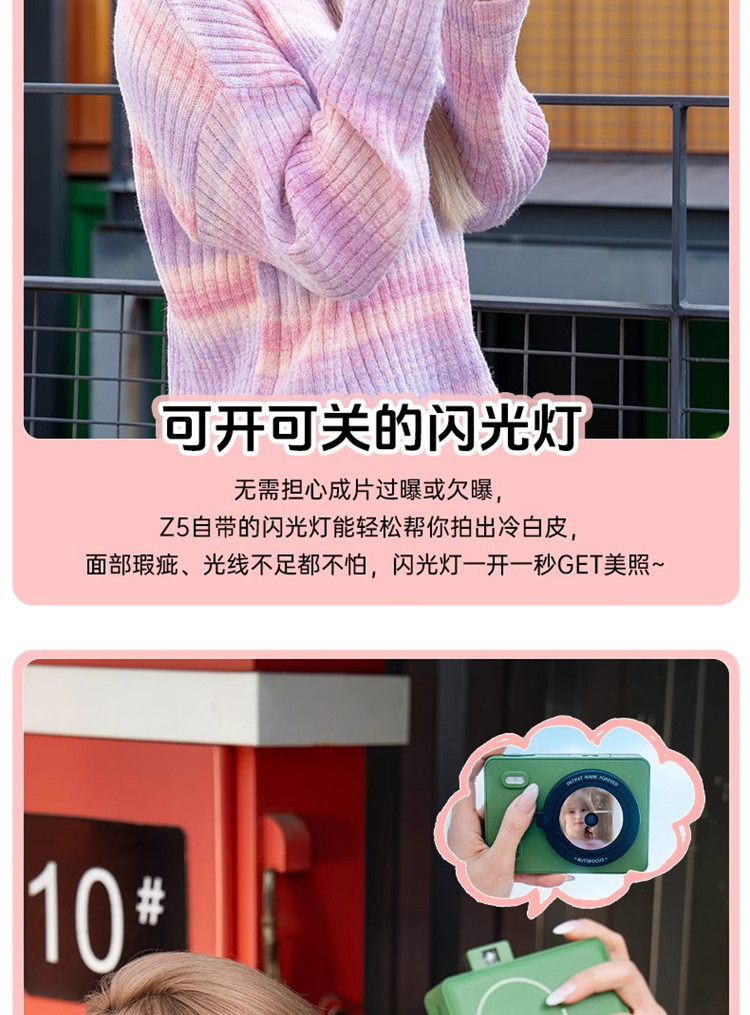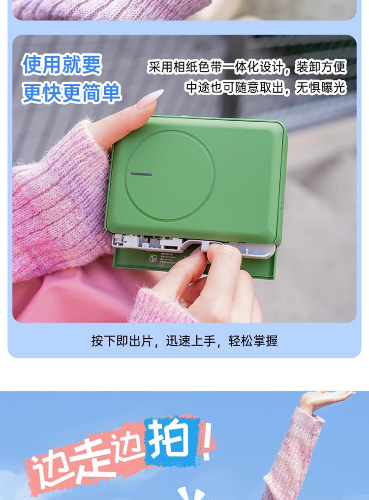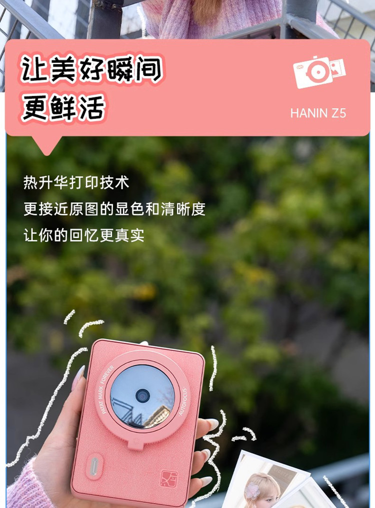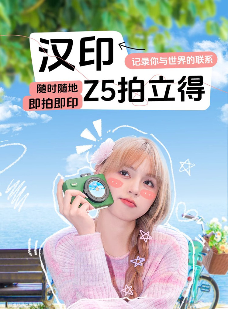 汉印 拍立得便携复古热升华照片打印机Z5 标配(Z5+10张相纸) 绿色