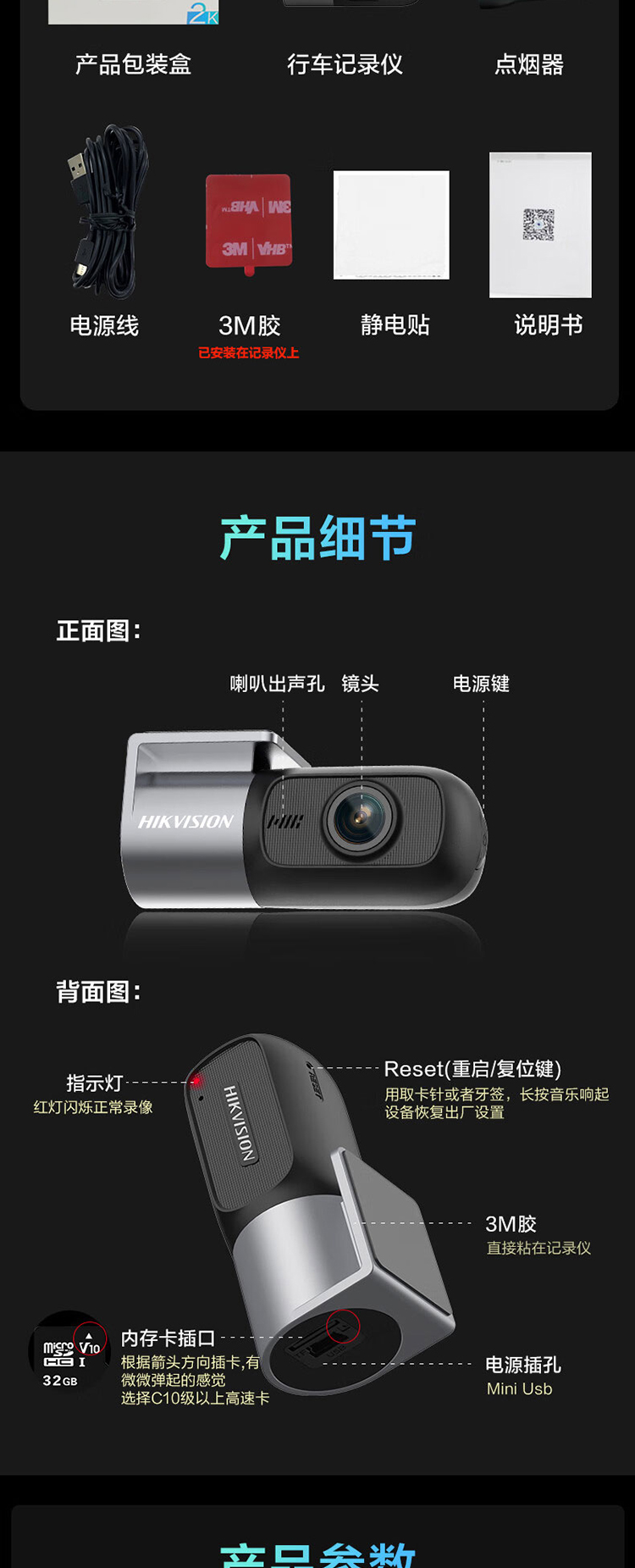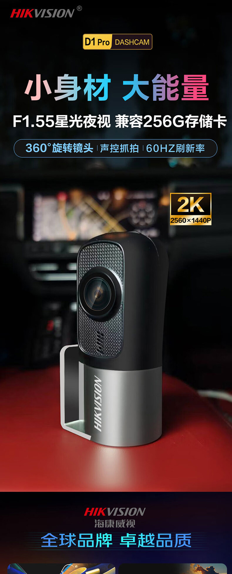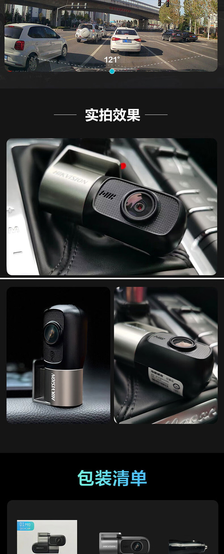 海康威视 2K星光夜视行车记录仪D1PRO 黑色