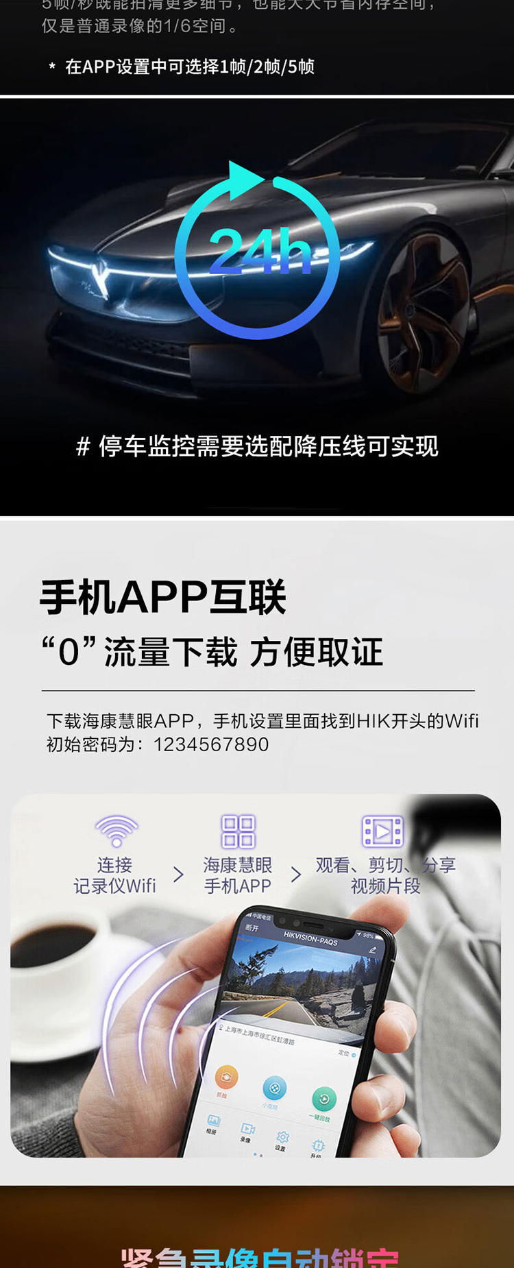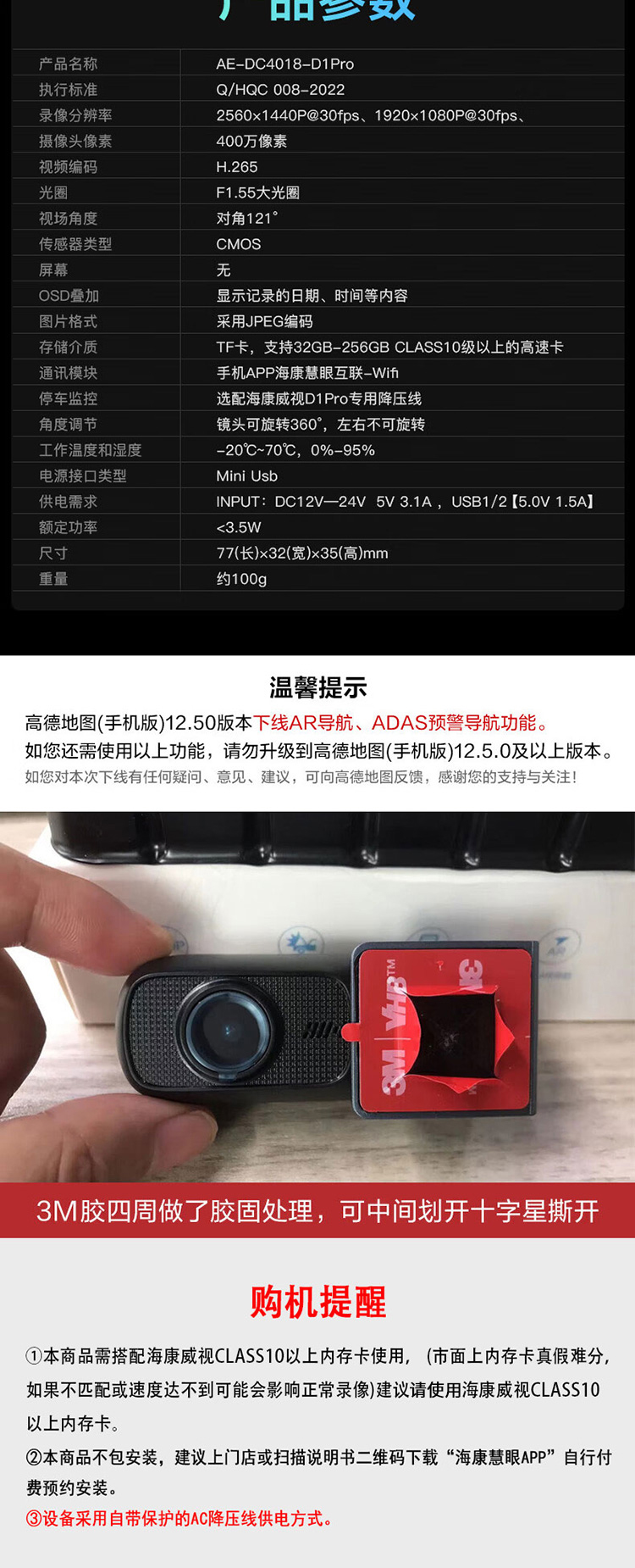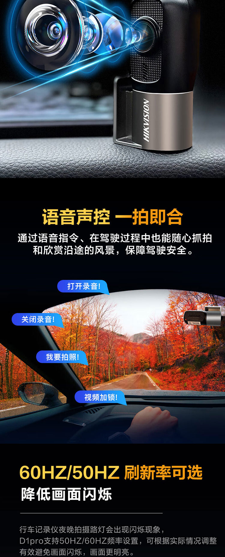 海康威视 2K星光夜视行车记录仪D1PRO 黑色