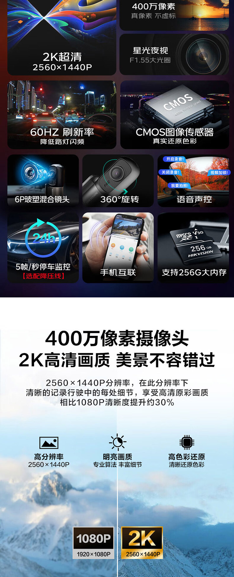 1440P超清400万像素,360°旋转镜头,60HZ刷新率